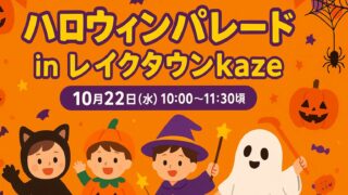 イベント レイクタウンkazeでイベント「ハロウィンパレード in レイクタウンkaze」が10月22日に開催 レイクタウンkazeでハロウィンのイベント「ハロウィンパレード in レイクタウンkaze」が10月22日に開催されます。 2025.10.04 イベント