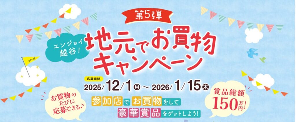 「どうせ買うなら地元で」「日常の買い物でワクワクしたい」という方にぴったり!賞品総額はなんと150万円。今年の冬は、越谷で“楽しく”“おトク”にショッピングを楽しみませんか?