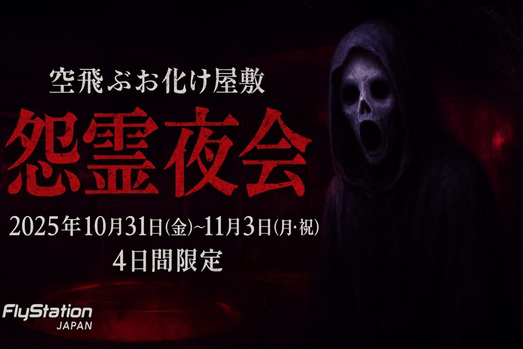 「FlyStation Japan」の《怨霊夜会》は、ただのハロウィンイベントではなく、“空を飛ぶ”という唯一無二の体験と“ホラー”を掛け合わせた全く新しいエンタメです。スリル満点のスカイダイビング、突然現れるお化け、豪華な来場特典…そのすべてが非日常のワクワクを演出します。