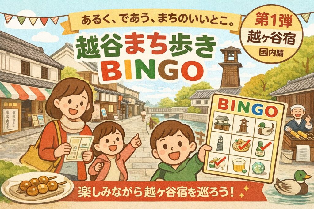 歴史ある旧日光街道・越ヶ谷宿を舞台に、街を歩きながらイラスト入りのBINGOカードを完成させていく、家族や友人同士で楽しめる参加型企画です。