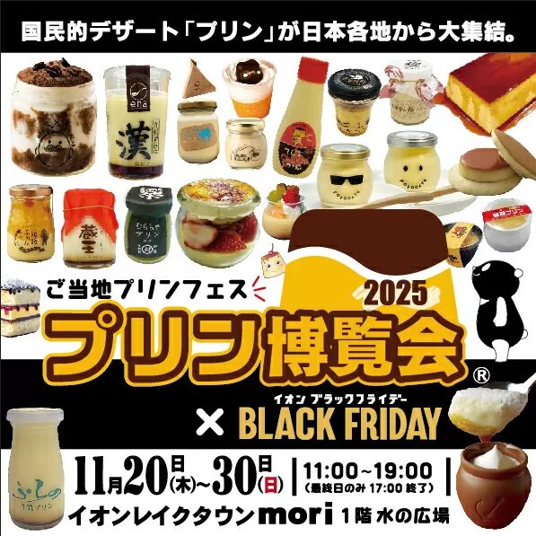 2024年11月22日(金)から12月1日(日)まで、イオンレイクタウンmori(埼玉県越谷市)で「プリン博覧会2025」が開催されます!
