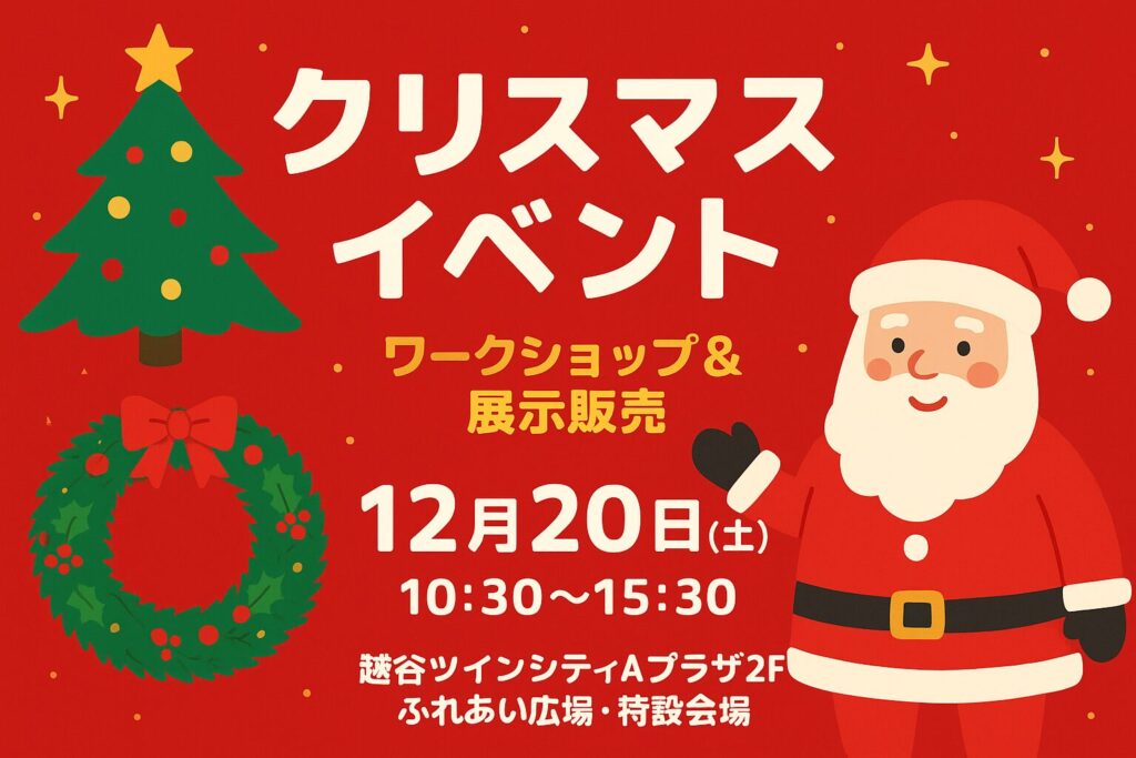 越谷駅前の「ツインシティAプラザ」で開催されるクリスマスイベントでは、無料で参加できる「クリスマスリース作りワークショップ」や、こだわりの作品が並ぶ展示販売など、心温まる企画が盛りだくさん。予約不要でふらっと立ち寄れる手軽さも嬉しいポイントです。